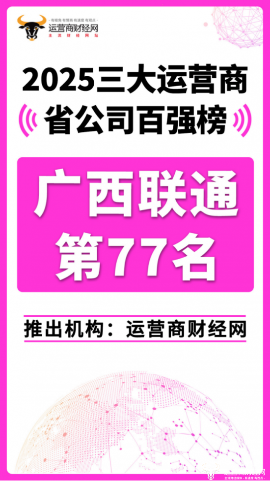 日前,运营商财经网重磅推出“2025三大运营商省公司百强榜”!广西联通位列总榜第七十七名。