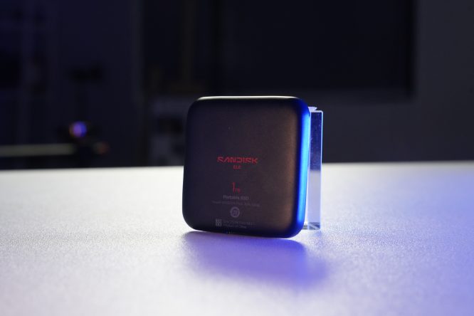 初见闪迪ELE移动固态硬盘,其外观设计便让人眼前一亮。延续闪迪家族经典的简约风格,整体机身造型圆润,点缀红色全新闪迪logo,机身还有类肤质涂层,摸上去触感细腻。实测 1TB 版本仅重45 克,约9mm厚,比常规银行卡略宽一点,无论是塞进牛仔裤口袋还是相机包侧袋都毫无压力。