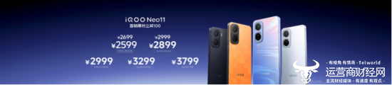 iQOO Neo11 共有 5 个版本可供选择,12GB+256GB 版本售价 2699 元(首销限时到手 2599 元);16GB+256GB 版本售价 2999 元(首销限时到手 2899 元);12GB+512GB 版本售价 2999 元;16GB+512GB 版本售价 3299 元;16GB+1TB 版本售价 3799 元,即刻下单,享更多权益。