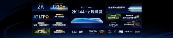 作为游戏体验的核心载体,iQOO Neo11 的屏幕配置堪称 “同档天花板”,其搭载的2K 144Hz珠峰屏,由iQOO与京东方联合研发,在分辨率、亮度、护眼、触控等维度全面拉满。