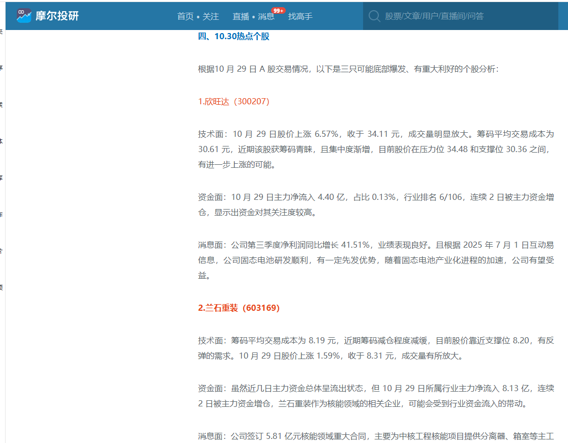 10.30个股荐推: