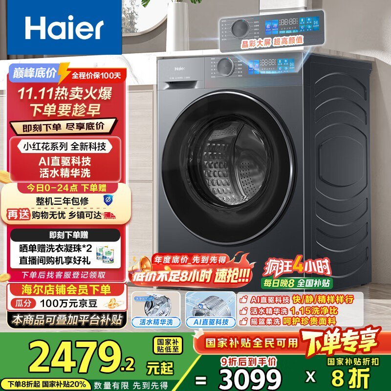 海尔10公斤滚筒洗衣机秒杀