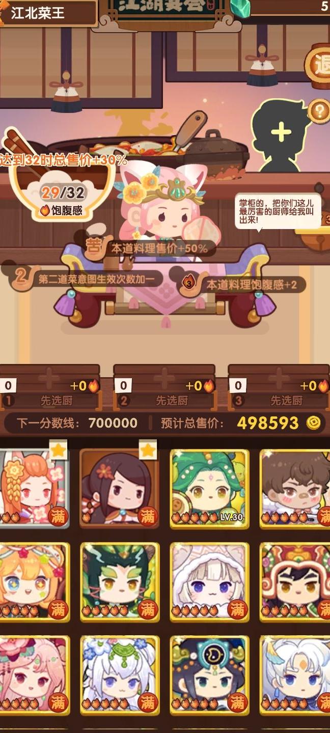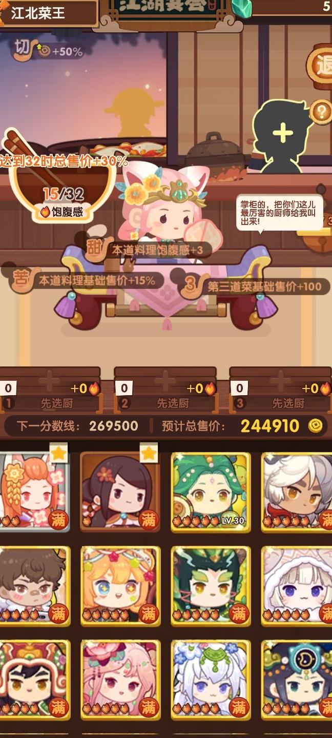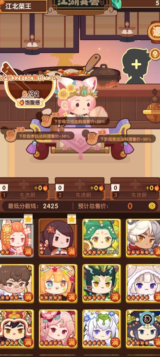 所谓饱腹值,实质是控制出餐数量。应根据现有菜谱,在满足火数要求的同时尽量提高售价。可先随意上菜,观察完三个阶段的标签后再返回第一阶段,重新规划策略。