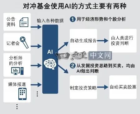 以判断是否投资美国苹果公司的股票为例,除股价、买卖数据、财务状况、分析师的分析报告外,还会让AI学习新闻报道、产品信息乃至线上商店的购买记录。AI会从这些数据中找出与股价的相关性,并自动判断是否进行买卖操作。