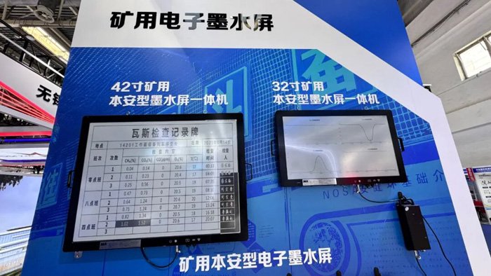 三方联合研发的明星产品 —— 矿用本安型墨水屏一体机,专为井下高风险易燃易爆区域定制,通过电路抑制与多重保护设计,从根源上杜绝火花与热量引爆风险,彻底解决了传统显示设备的本质安全隐患。这款设备采用E Ink元太科技的类纸显示技术,在井下强光或昏暗环境中均能清晰显示安全提示、作业指令与地图导航信息,且低功耗特性大幅减轻了矿井电力系统负担,单次续航可满足长时间作业需求。