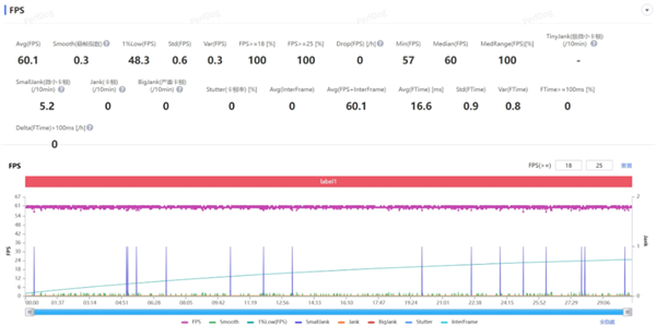 但我们还是简单又跑了遍 《原神》 ,30 分钟须弥城全高画质下来,依旧是标准结局 60 跑满,功耗也只有 3.9W 。