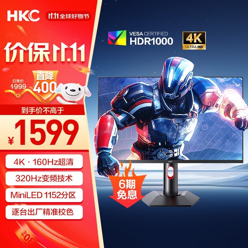 HKC G27M7 27英寸Mini-LED显示器1490元