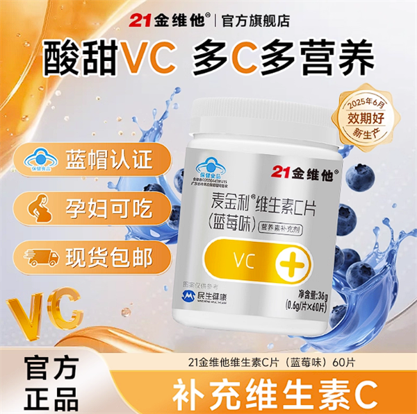 蓝帽认证,21金维他官旗维生素c片。