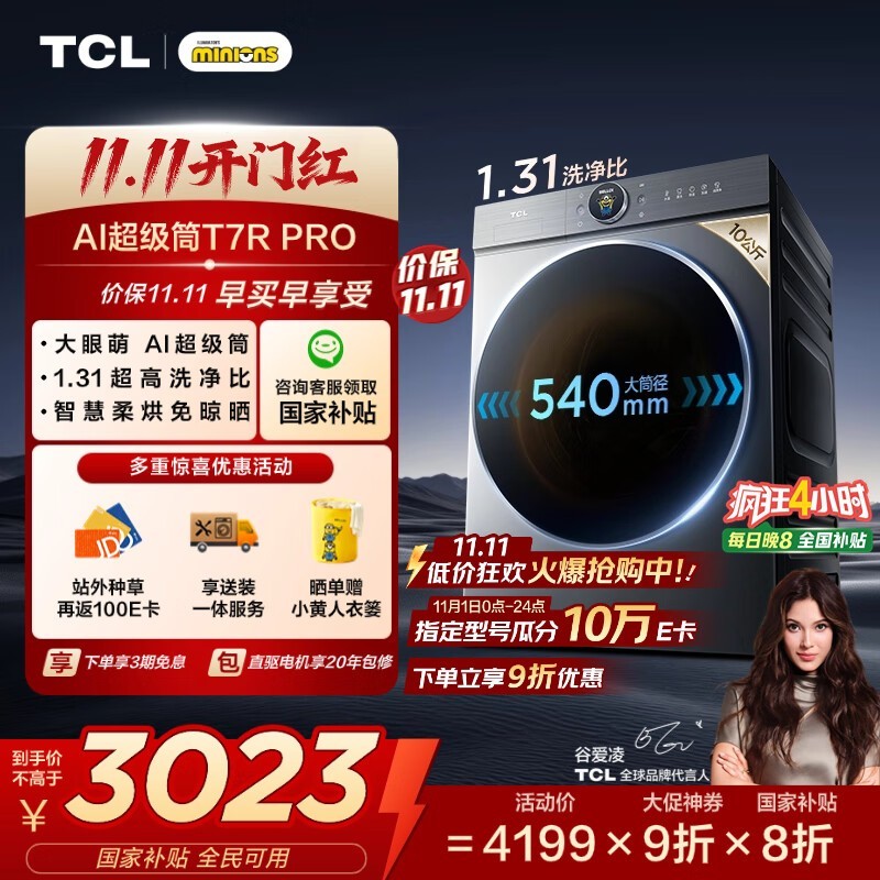 TCL大眼萌Pro洗烘一体机2990元