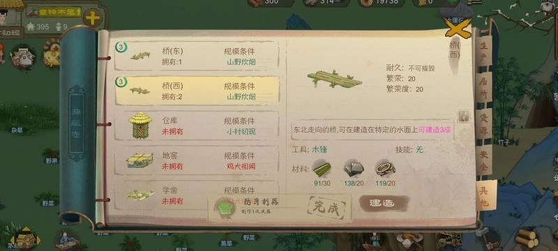 准备好耕种所需的五件套后,繁荣度便足以升级规模。将房屋全部更换为竹屋,并在夏季来临前控制桃树的采摘量,以便在同一个夏季实现两次桃子丰收。