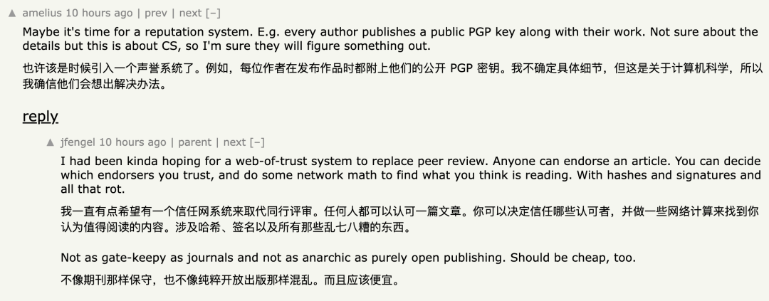 基于此,有人提议建立一个信任系统,任何人都能给任何文章「背书」,读者自己挑信得过的背书人去读。但这种方法的可行性仍有待讨论。
