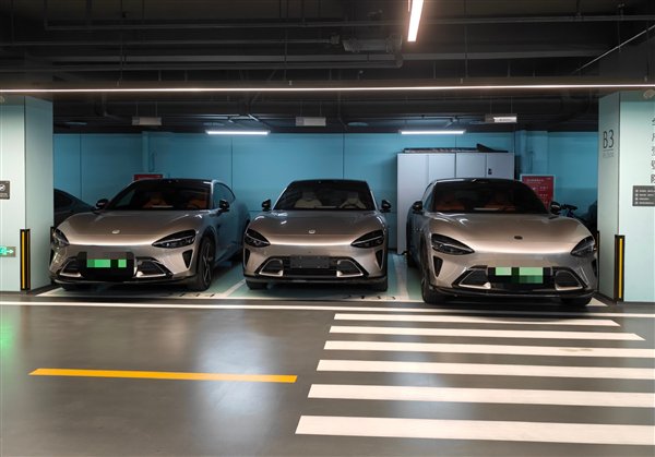 从图中来看,三款钛金属色的小米YU7并排停车三个相邻的车位上,不仅外观、颜色完全一致,连轮毂也基本一样,堪称“复制粘贴”。