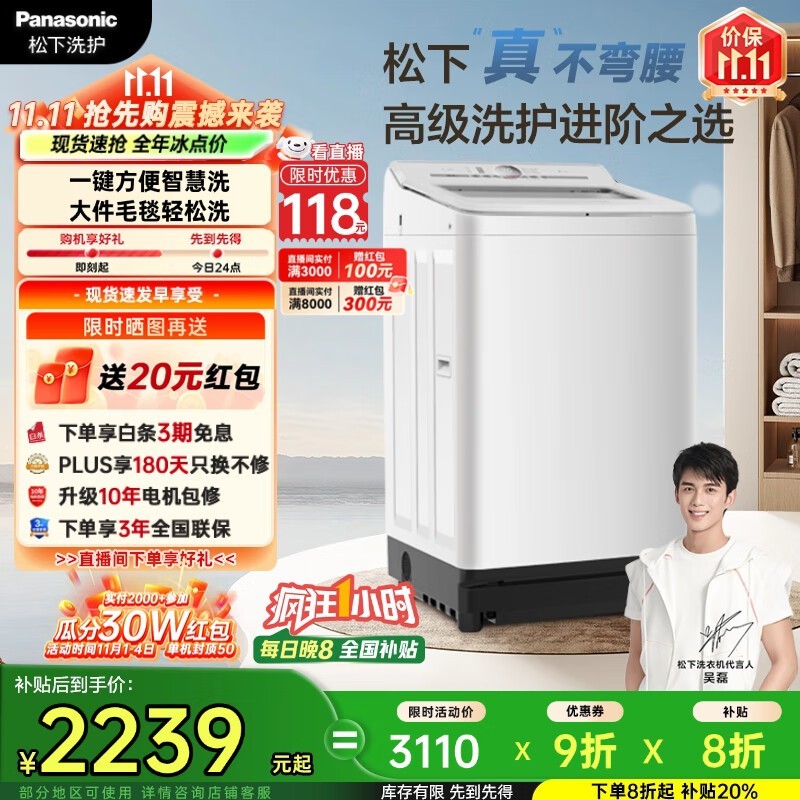 松下10kg波轮洗衣机2239元