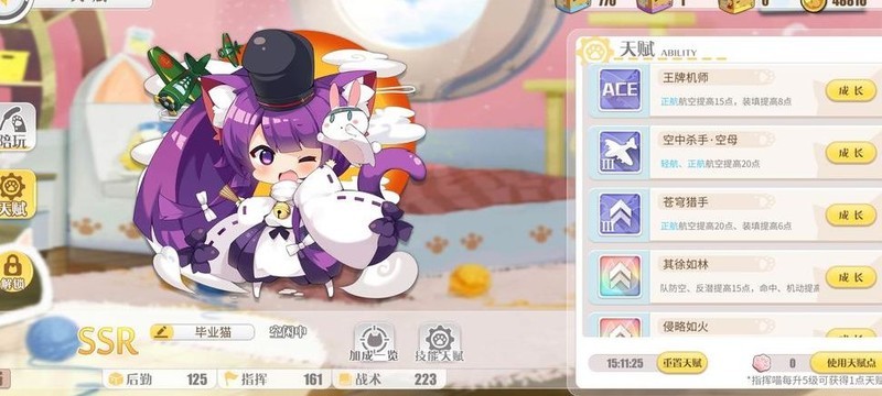 指挥猫每只提供55航空、14装填和3%伤害加成,双猫共计110航空、28装填与6%伤害。若将其徐如进替换为既定的命运,还可额外提升20航空,使总航空加成达到130。