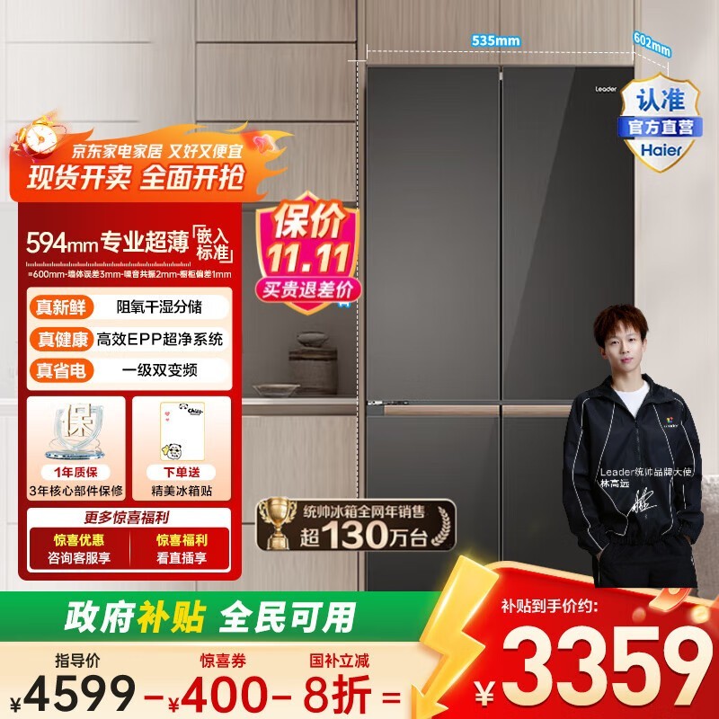 Leader海尔500L十字冰箱4199元