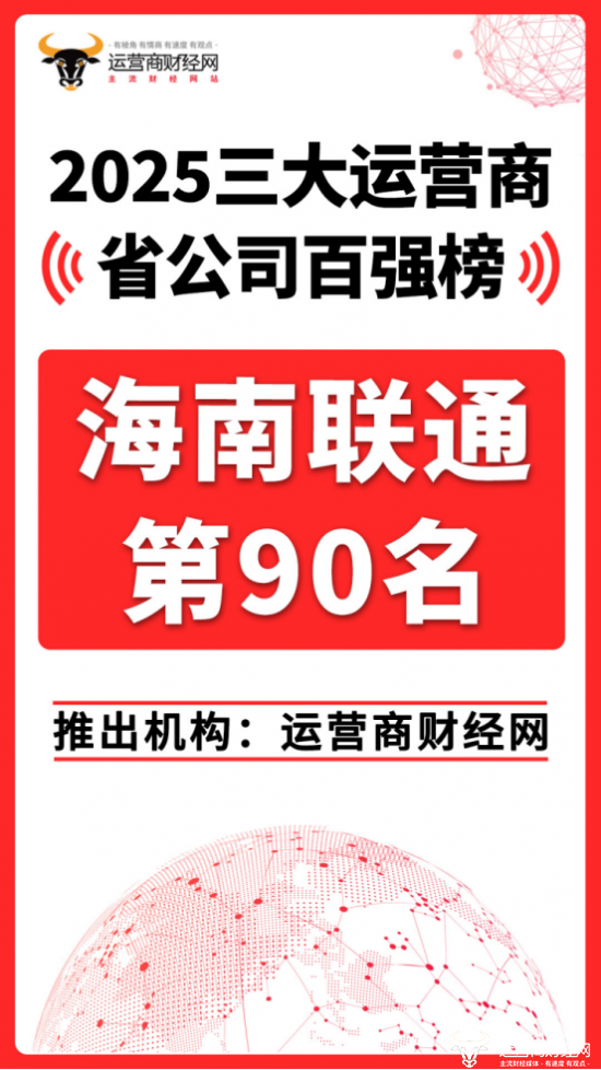日前,运营商财经网正式推出“2025三大运营商省公司百强榜”!海南联通名列第九十位。
