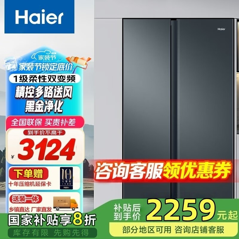 海尔616L风冷冰箱,到手仅2824元!