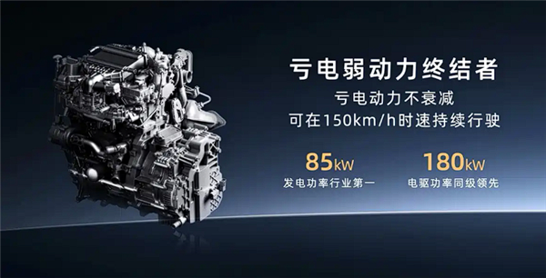 其中增程版车型搭载的是1.5L发动机,最大功率74kW,发电效率高达3.73kWh/L,电机最大功率180千瓦,CLTC纯电续航里程为210公里,综合续航1240km,馈电油耗5.5L/100km,支持3C快充,15分钟充满30%-80%。