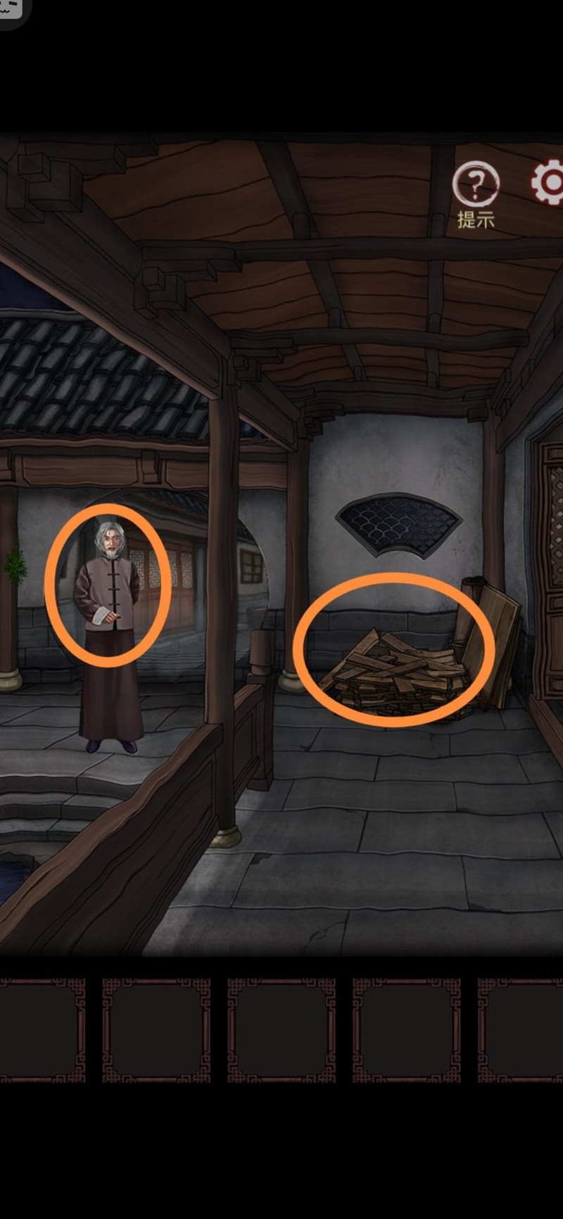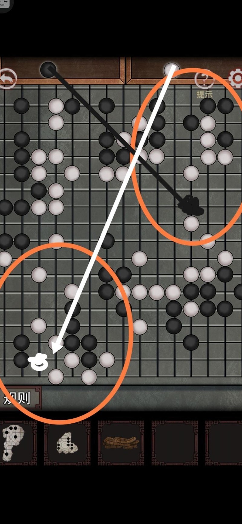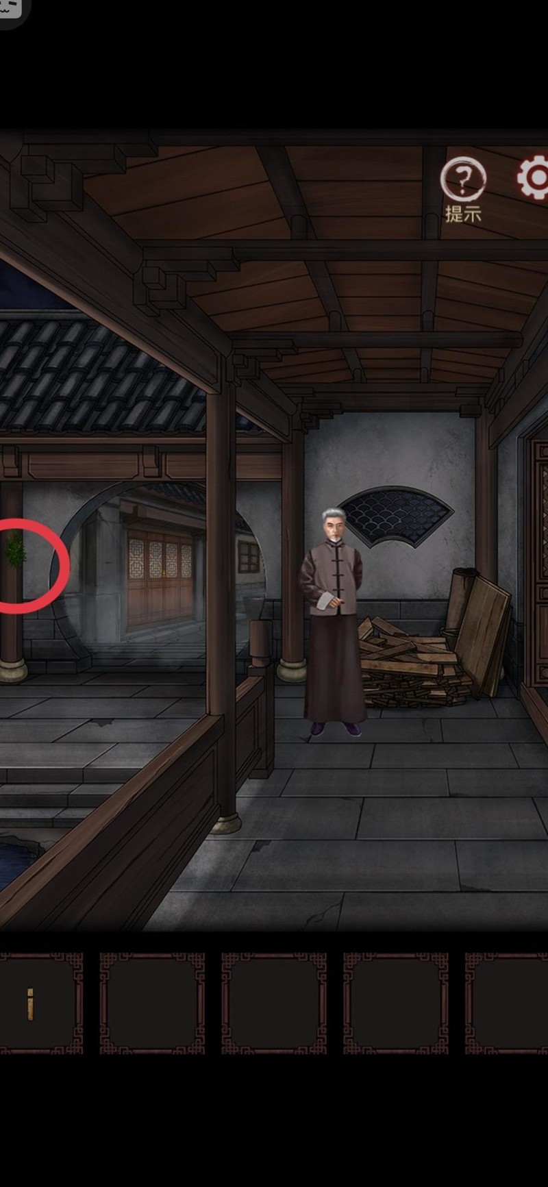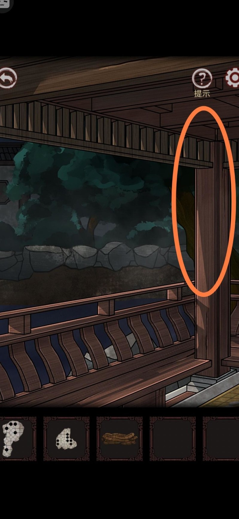 返回老爷爷处,向左行至八角亭,亭内有围棋残局,先到亭柱取下绳子。