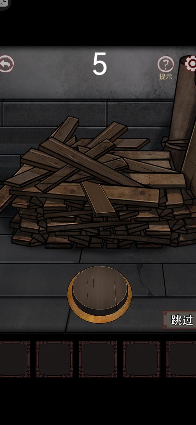 迅速从木堆中挑选合适的木头,五秒内完成,否则疯老头就会出现。