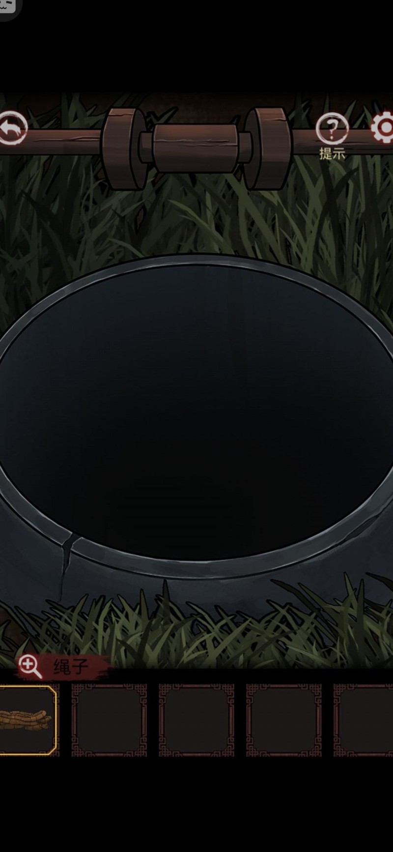 返回后院,将绳子固定在井口后爬下。