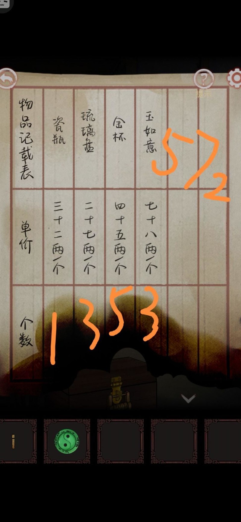 箱中五只金杯、三件玉如意、三个琉璃盏和瓷瓶,实在装不下了。对了,客厅还有一件,这些都是珍贵财物啊。