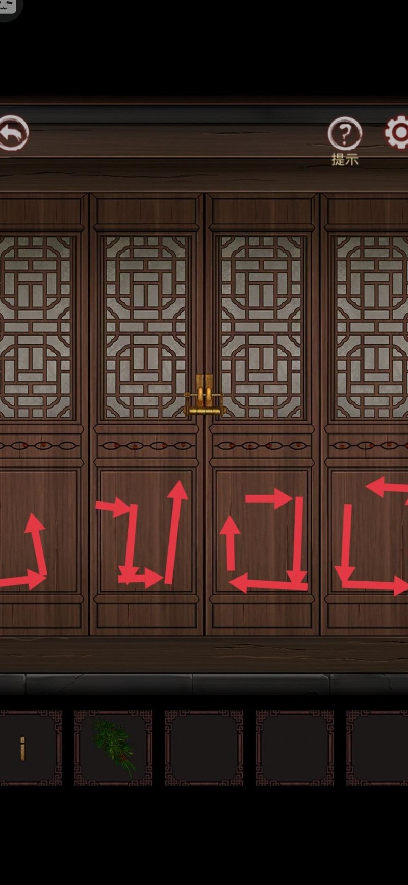 门上的眼睛四处张望,按其视线方向依次标记线索位置。