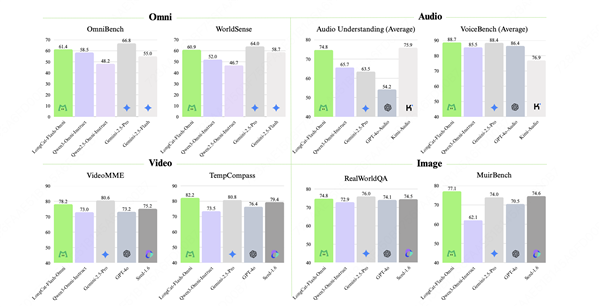 实测显示,其图像理解性能与闭源全模态模型 Gemini-2.5-Pro 相当,且优于开源模型 Qwen3-Omni。短视频理解性能超越同类模型,长视频处理能力比肩Gemini-2.5-Pro。