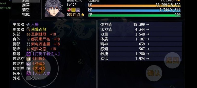 主角以主手人屠为核心,副手必配诸葛连弩,其余装备优先选择高力量与高暴击属性。强化等级需全部拉满,并镶嵌+3力量晶石。刻印首选无限,若无则使用+2%力量类刻印。宝石搭配地狱犬牙齿与哮天犬牙齿,缺失时可用攻心五蕴替代。技能应选取提升主属性及特殊属性的被动技。称号推荐打狗不看主人,属性堆叠重点集中于力量与暴击率。加点方面,先将幸运点满,再主加力量,因幸运不足会导致怒火焚天难以叠加。
