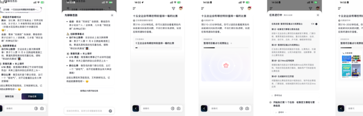 当我输入「十五全运会有哪些特别值得一看的比赛」,它会先生成一份大纲,告诉我们它会如何研究这个任务。我们可以直接对话,进行任务的修改。