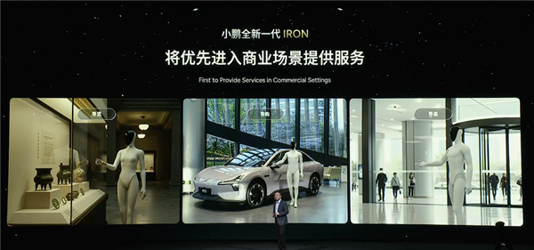 何小鹏介绍,小鹏全新一代IRON将优先进入商业场景提供服务,比如博物馆、4S店、商场。
