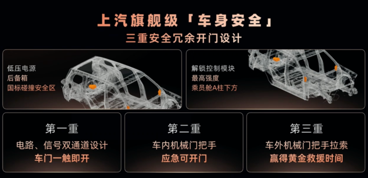 在安全冗余方面,智己强调 LS9 设计了三重安全冗余,不仅车内车内配备机械门把手,车外配备机械门把手拉锁,车门电路和信号也均采用了信号双通道设计。