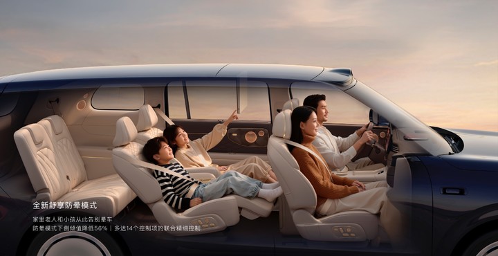 比如在车辆过弯时,智己 LS9 可以在毫秒级时间内提升空悬刚度和电控减震器阻尼,从而降低车辆约 46% 的侧倾角度,让车身在过弯时更平稳。这套新底盘还能做到最多 14 项的跨域控制,实时调整车辆动态,能够使车辆的「舒享防晕模式」体验更好。