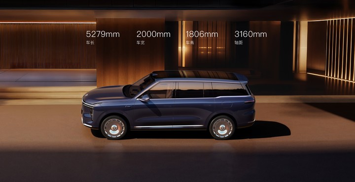 相较于 LS6 和 LS7 的偏圆润设计,LS9 在外观塑造上变方了不少,力量感更足,智己 LS9 的长宽高分别为 5279/2000/1806mm,轴距为 3160mm。