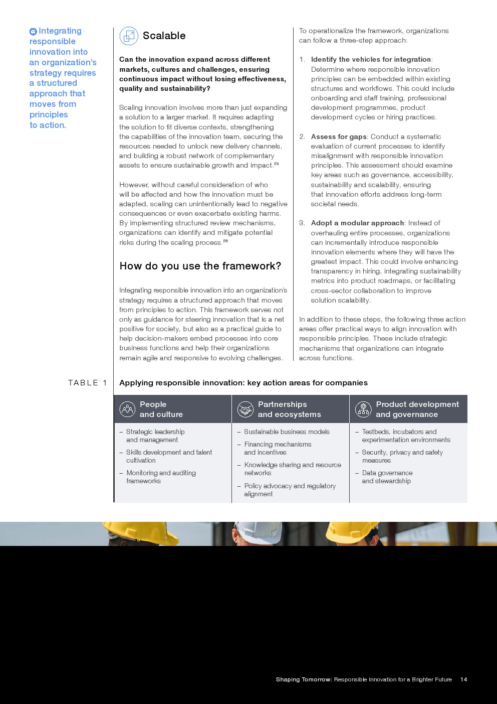 将负责任创新融入日常运营:为驱动影响力,组织需要将这些原则嵌入人员与文化、合作伙伴与生态系统、产品开发与治理等相关流程。