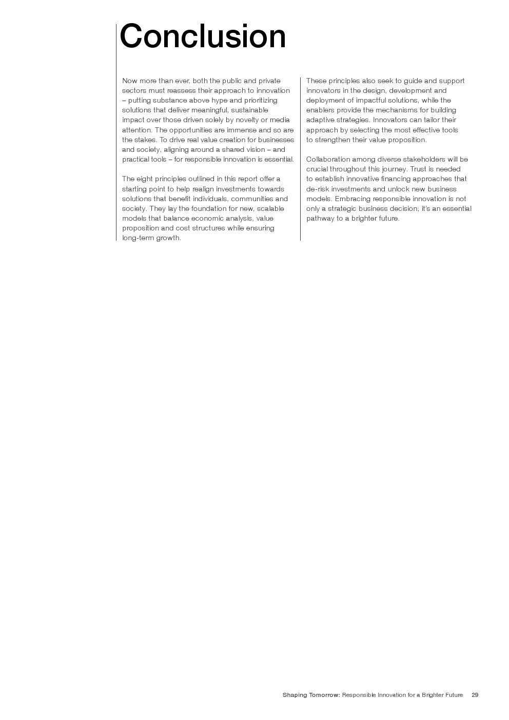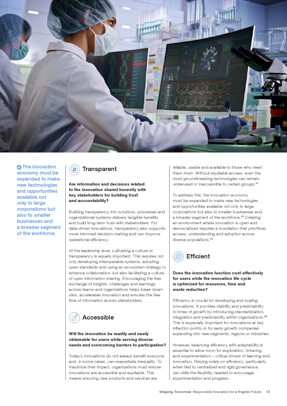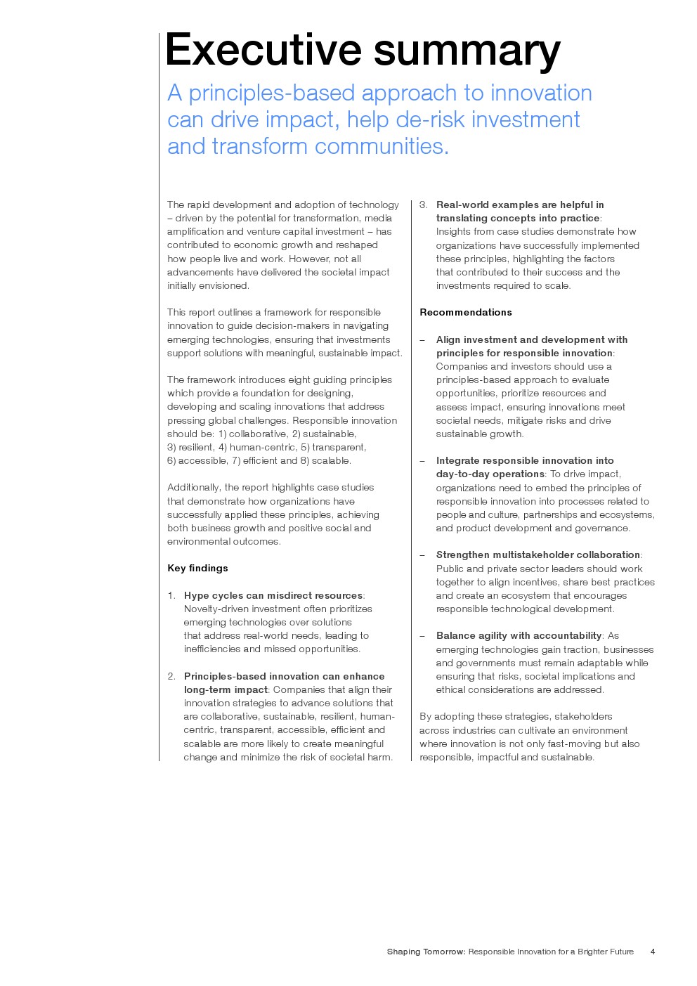 报告概述了一个负责任创新的框架,以指导决策者驾驭新兴技术,确保投资支持具有实质性和可持续影响的解决方案。