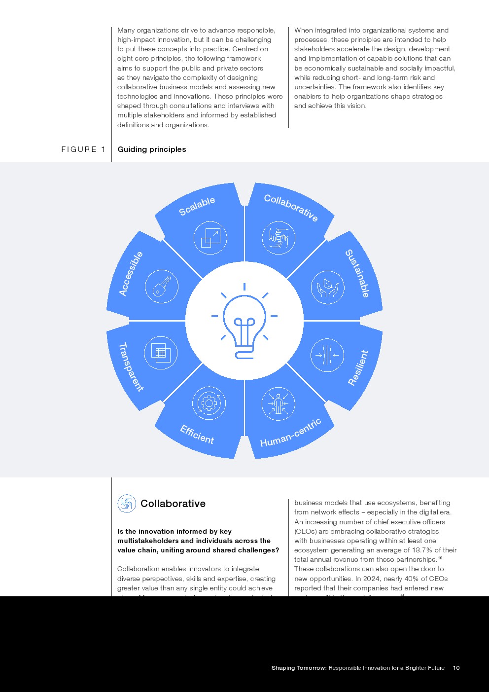 基于原则的创新可以增强长期影响:将创新战略与协作、可持续、有韧性、以人为本、透明、可获取、高效和可扩展的解决方案相协调的公司,更有可能创造有意义的变革,并最大限度减少社会危害风险。