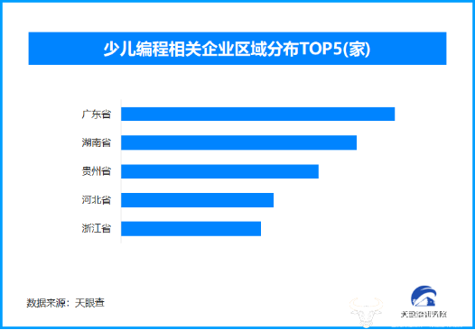 天眼查专业版数据显示,截至目前我国现存在业、存续状态的少儿编程相关企业超320余家。从区域分布来看,广东省、湖南省、贵州省少儿编程相关企业数量位居前列,三个省市数量总和超过110家,占企业总数的34.2%。
