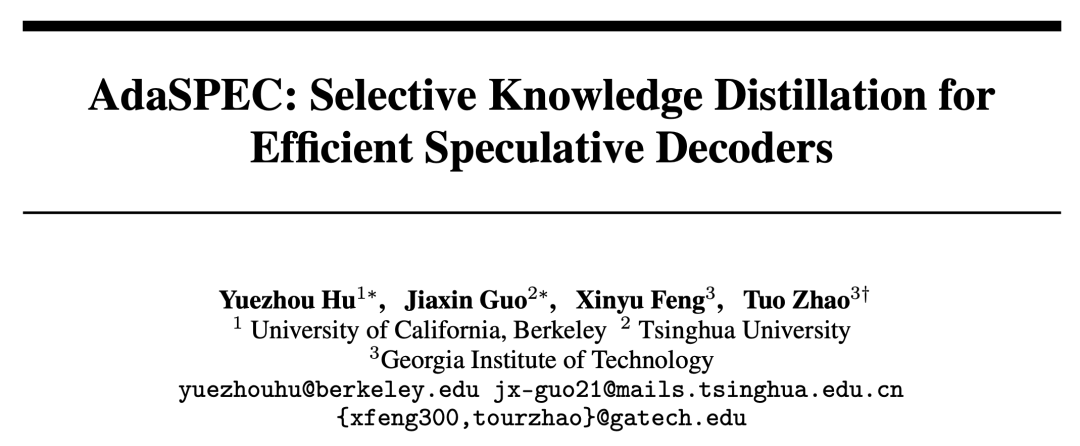 论文标题:AdaSPEC: Selective Knowledge Distillation for Efficient Speculative Decoders