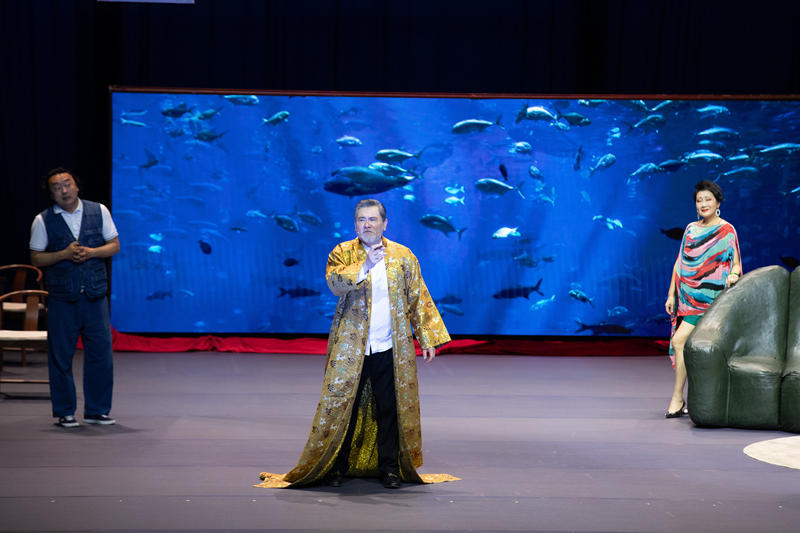 《鳄鱼》的另一大突破,在于其戏剧技法的革新。“长时叙事”要求极高的结构控制与节奏管理。主创团队以紧凑的时间推进与情绪递进保持全程张力,使观众在“不断逼近的崩溃”中持续情感悬置。在剧作对于语言密度与舞台语法的融合中,莫言的语言带有文学的重量,而导演以“鱼缸”“空间限制”“鳄鱼阴影”等物化隐喻完成舞台转译,形成一种视觉与叙事双轨的舞台语法。象征、写实与幻象并行,使舞台成为意识流动的场域。这一切使《鳄鱼》成为中国戏剧在技法与美学上的重要里程碑:它不是形式炫技,而是通过结构、语言、节奏的精密控制,重新证明戏剧仍能在工业化语境下保持诗性与冲击力。