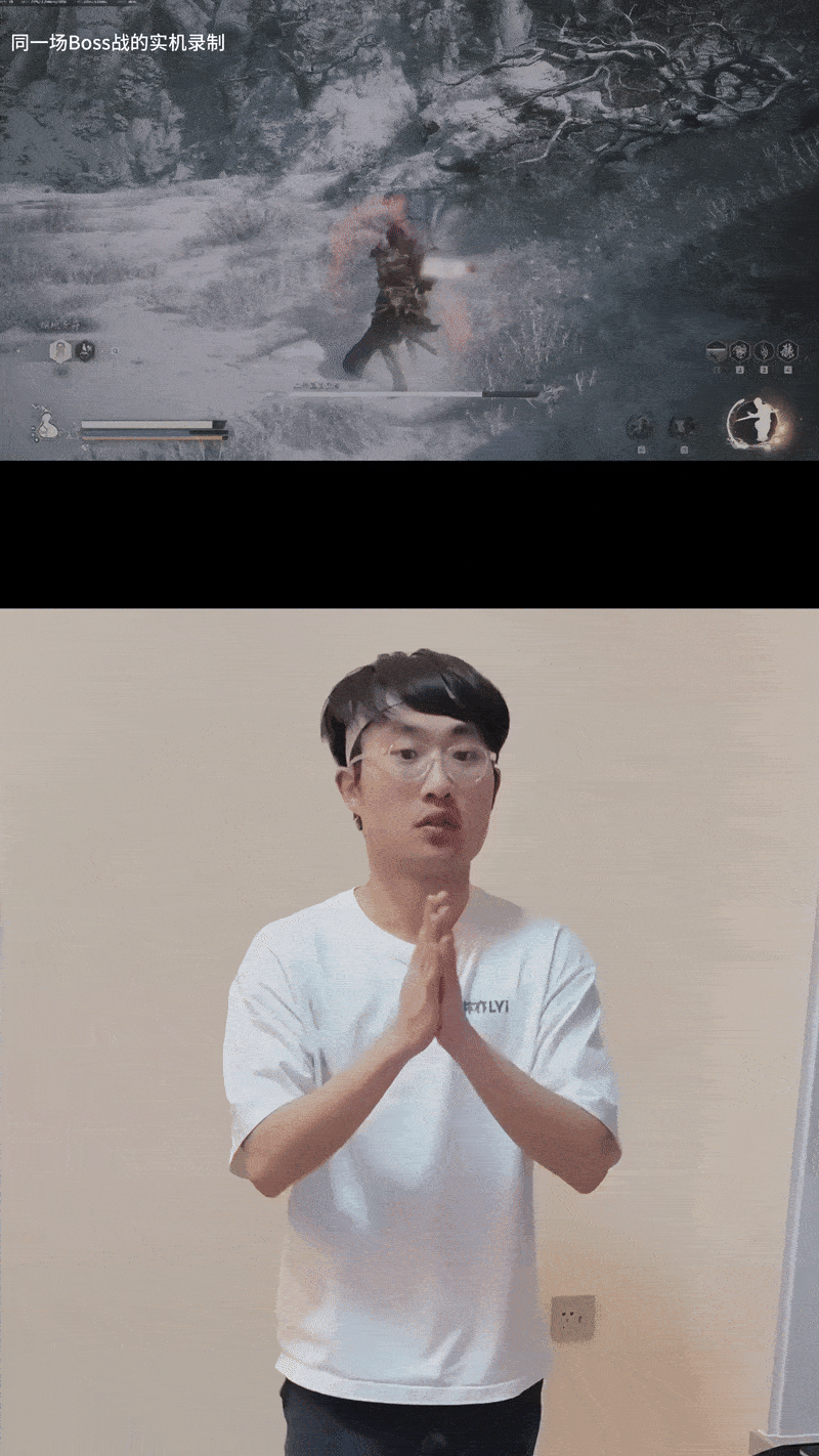 所以我们发现《黑神话》也非常适合体感游戏:怪物做动作时,往往会搭配一个声音提示。你快速做出体感动作,一旦抓对时机,就能打中怪、识破、或者做出很秀的操作。那个正反馈非常强,会让你不断进入循环。虽然一开始会有点难,但一旦掌握节奏感,就会非常上瘾。我非常推荐大家试着用体感的方式去玩《黑神话》。