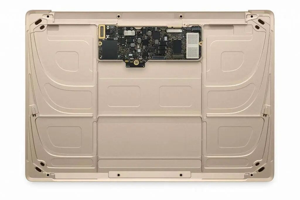 MacBook不用多说,搭载的就是一颗「真·手机芯片」,十年前的12寸MacBook主板其实也已经做到了只有手机大小。