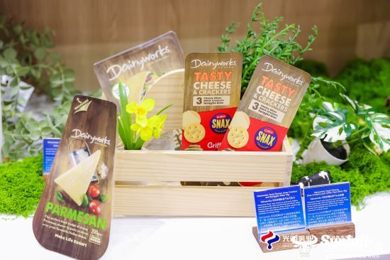 作为新西兰顶级乳品制造商,新莱特携旗下多元乳制品亮相,集中展示从即食零食到专业食材的多维创新成果:Dairyworks系列精准契合便捷化消费趋势,涵盖奶酪棒、奶酪饼干等随享零食,以及意式混合碎奶酪、帕玛森与马苏里拉奶酪等家庭烹饪食材,满足多元口味与营养需求。