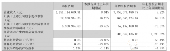 而货币资金由去年年末的8.66亿元下降至2.42亿元,降幅达72.06%,期末现金及现金等价物余额由8.54亿元下滑至2.28亿元,短期借款却较去年末增长59.87%至5.76亿元,公司短期偿款压力较大。