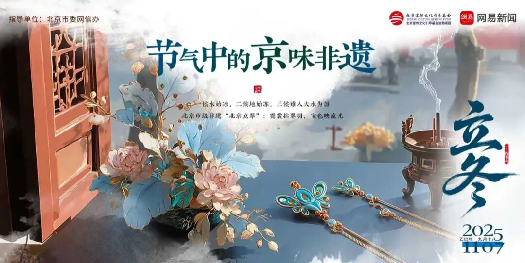 11月7日12时04分,立冬至,万物始藏。当京城褪去秋日斑斓,北京市级非遗“北京点翠”正以其“蓝若冰光”的极致之美,点亮静谧冬日。点翠技艺承袭千年,以金银为托,缀以翠羽,历经数十道工序,方得流光溢彩,成就“活色生香”的传奇。它于寂静中创造华彩,恰如立冬之藏纳蕴新生。