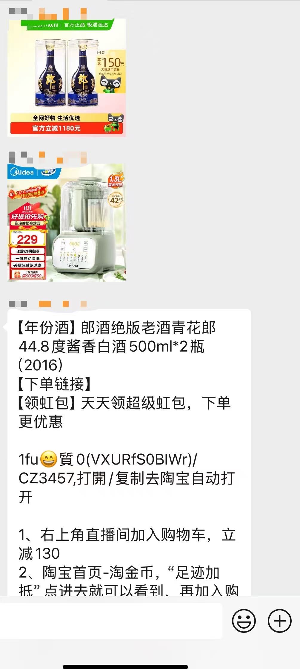 “白酒天然利润高,佣金高,很多同行做酒群、母婴群等垂类社群,在群里夹带其他商品的广告链接,吸引用户下单获取更多佣金。”刘洋向时代周报记者解释道。