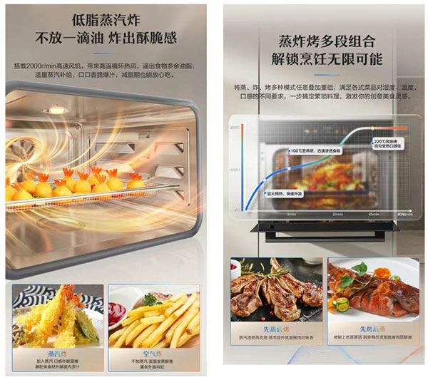 蒸烤炸多段组合:一台顶三台解锁N种吃法