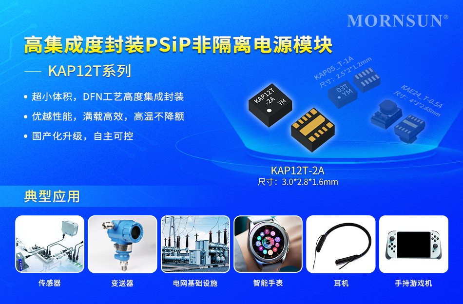 在电子消费、工业自动化等追求极致的领域,不足方寸的电路板上,如何“以小现大”?PSiP电源应运而生。金升阳依托强大的产研实力,匠心打造超小型和高效能并举的芯片级电源模块KAP系列,为相关领域提供无忧电源方案。继KAE24_T-0.5A、KAP05_T-1A、KAP05T-3A获得市场充分肯定后,本次重磅推出KAP12T-1A、KAP12T-2A两款新品,以满足12V输入的应用需求。
