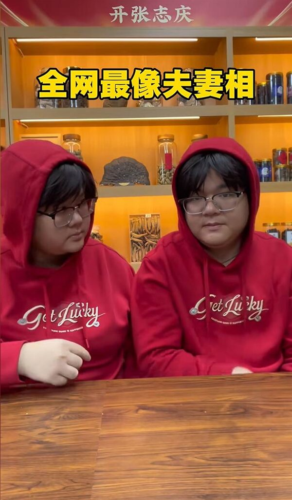 视频中的这对夫妻戴着同款假发,穿着同款衣服,被网友称为“全网最像夫妻”。有网友表示“比双胞胎还像”,还有网友建议“去验个DNA”。