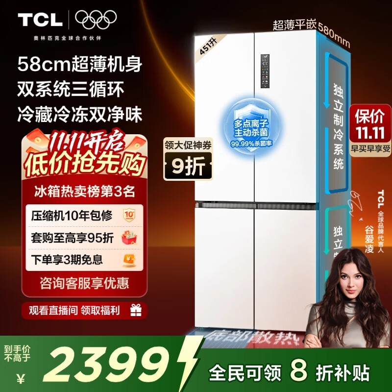 TCL 451L冰箱超值特惠,到手仅2399元
